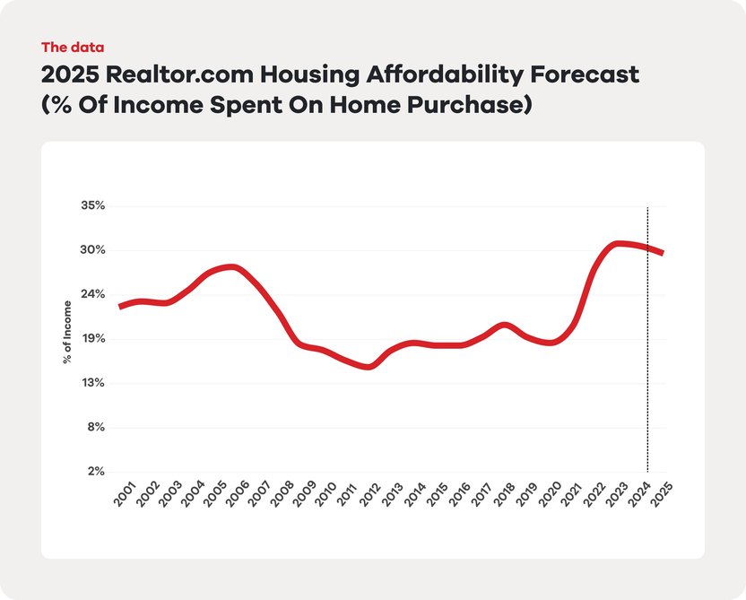 The forecast projects slight improvements in affordability in 2025, but any gains will likely come from growing wages or increased disposable income from tax breaks, rather than falling home prices.