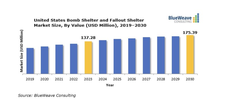The market for fallout shelters has increased from an estimated $137 million in 2023 to $175 million in 2030, according to a report from consulting firm Blue Weave.